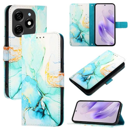 Funda de Cuero con Tapa para Tecno Spark 20 Pt003 con Patrón Mármol (Verde)