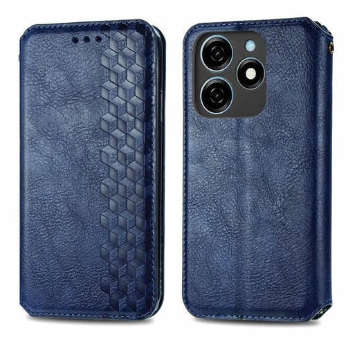 Funda para Tecno Spark 20C 4G Cuero Magnético Prensado Cubic Grid (Azul)