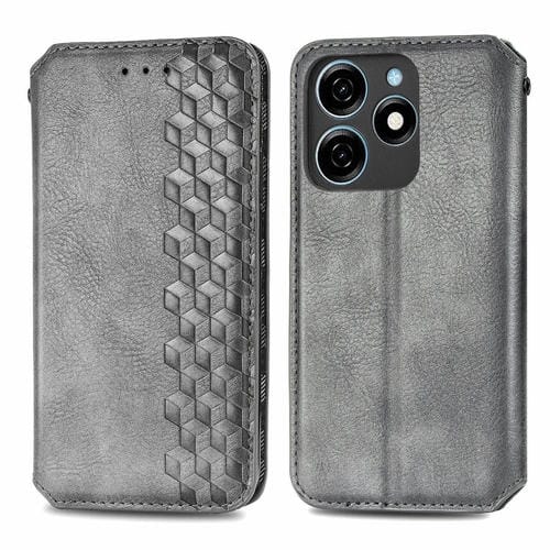Funda de Cuero Magnético para Tecno Spark 20C 4G Cubic Grid (Gris)