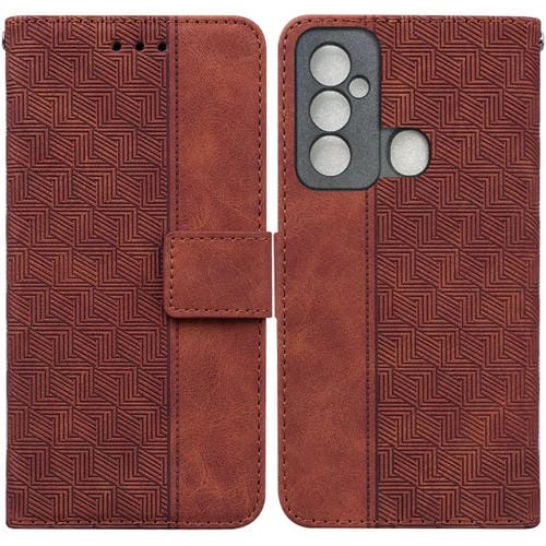 Funda de Cuero para Tecno Spark 6 Go con Relieve Geométrico (Marrón)