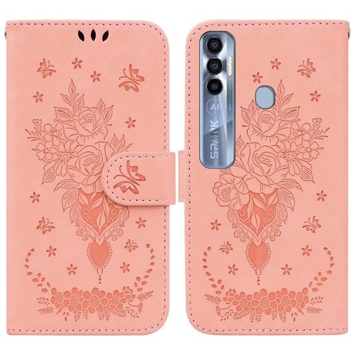 Funda para Tecno Spark 7 Pro Butterfly Rose Foothip en Relieve de Cuero (Rosa)