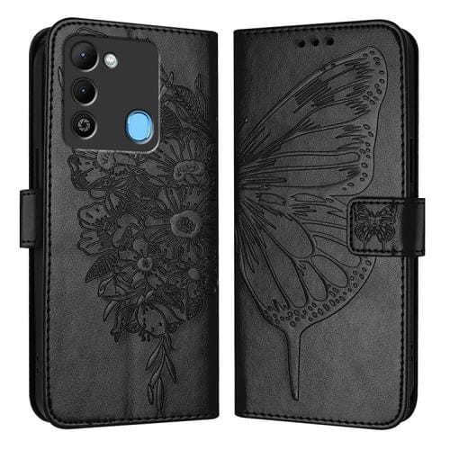 Funda de Cuero para Tecno Spark 9 con Mariposa en Relieve (Negro)