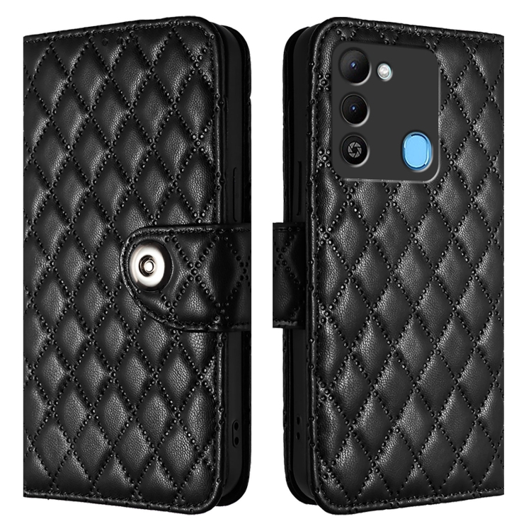 Funda de Cuero para Tecno Spark 9 con Tapa Textura Rombal y Cordón (Negro)