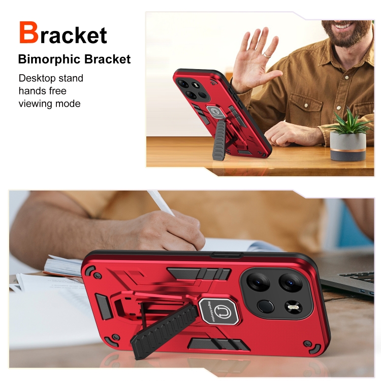 Funda para Tecno Spark Go 2023 2 en 1 con Soporte y Protección a Prueba de Golpes (Rojo)