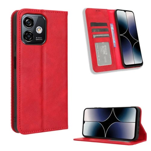 Funda de Cuero para Ulefone Note 16 Pro con Hebilla Magnética y Textura Retro (Rojo)