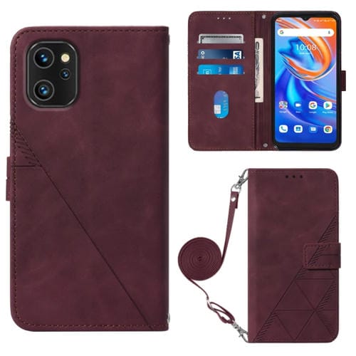 Funda de Cuero Crossbody 3D con Tapa para Umidigi A13 A13 Pro A13S (Rojo Vino)