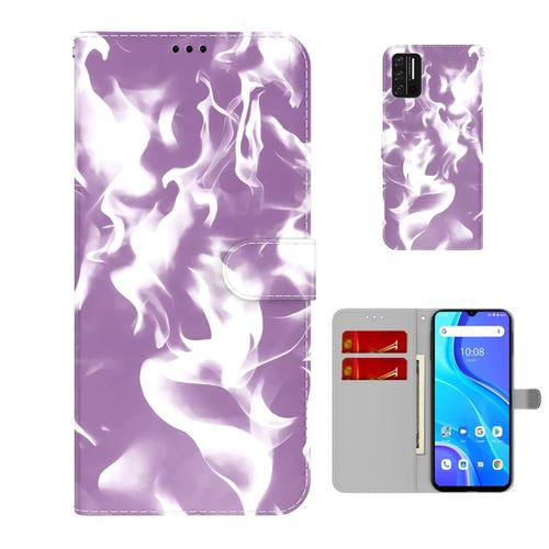 Funda de Cuero para Umidigi A7S Cloud Fog Stattern con Soporte y Ranura para Tarjeta y Billetera (Púrpura)