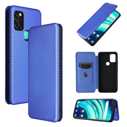 Funda para Umidigi A9 Textura Fibra de Carbono Magnética Flip TPU PC Cuero PU con Ranura (Azul)