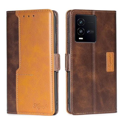 Para Vivo Iqoo 10 Caja de Teléfono de Cuero con Hebilla Lateral de Color de Contraste (Marrón Oscuro + Dorado)