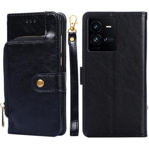 Para Vivo Iqoo 10 Pro 5G Funda de Cuero con Cremallera para Teléfono (Negro)