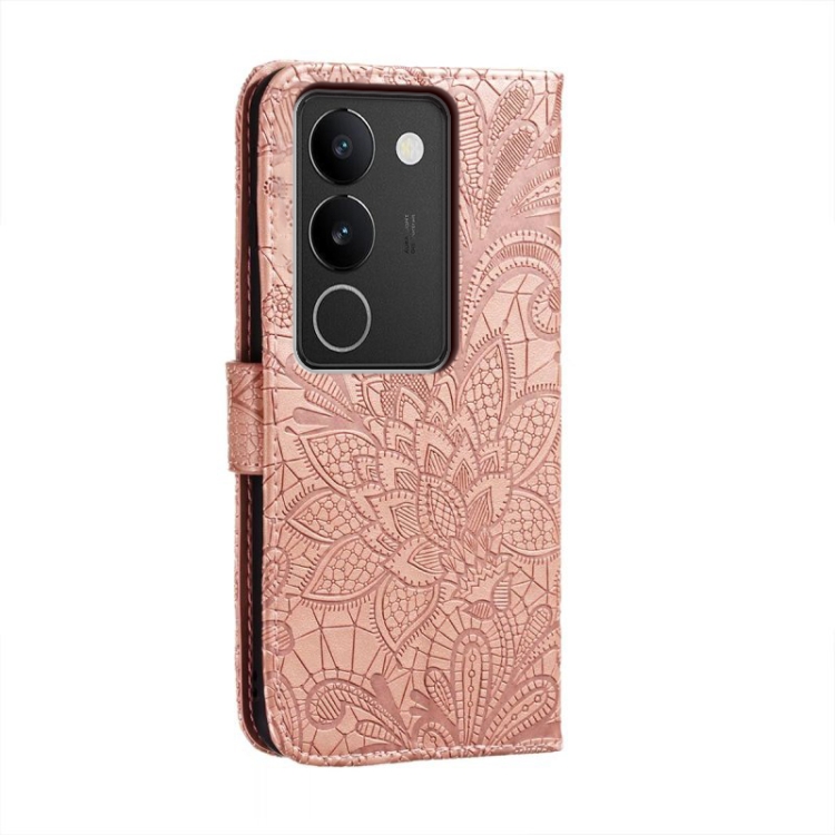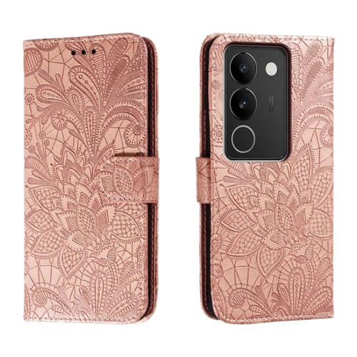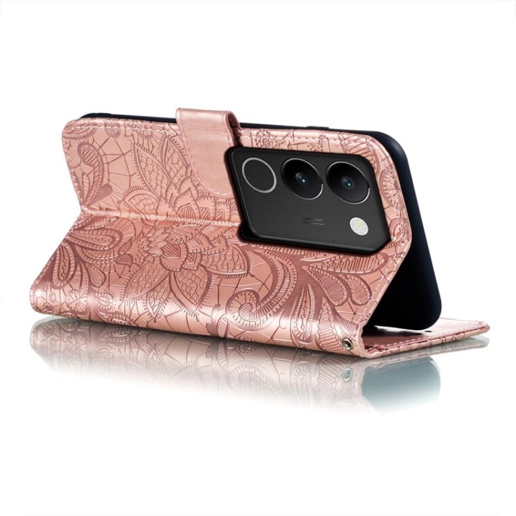 Para Vivo S17 Funda de Cuero con Tapa y Estampado de Flores de Encaje (Oro Rosa)