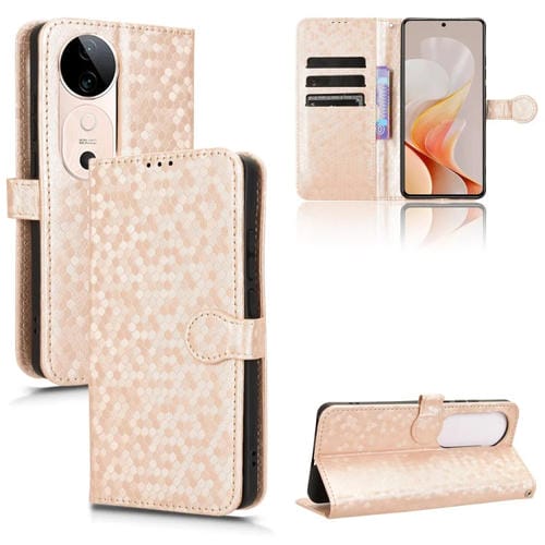 Para Vivo S19 Funda de Cuero con Textura de Punto de Panal (Dorado)