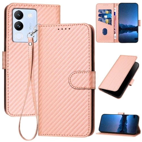 Para Vivo V29E Global / Y200 5G Global Yx0070 Funda de Cuero con Hebilla de Fibra de Carbono y Cordón (Rosa)