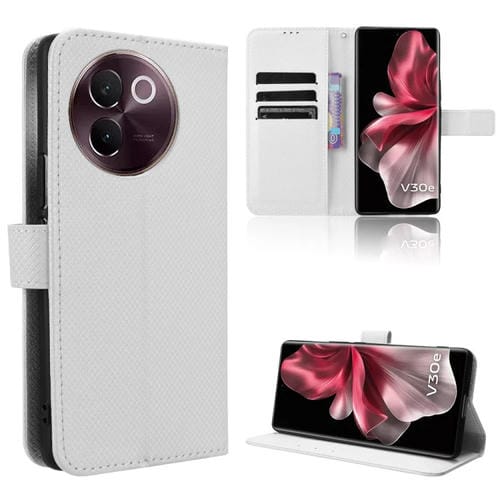 Para Vivo V30E 5G Funda de Cuero con Textura de Diamante (Blanco)