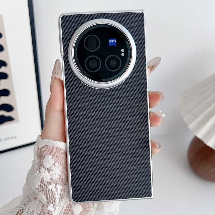 Para Vivo X Fold3 Kevlar Funda para Teléfono Ultrafina de Fibra de Carbono a Prueba de Golpes (Negro)