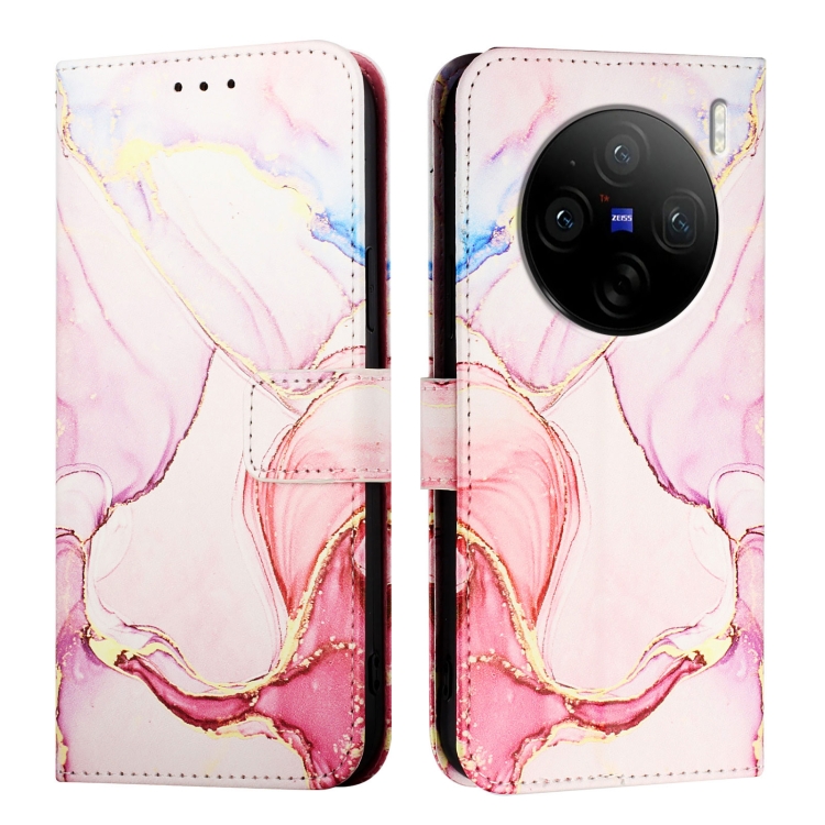 Para Vivo X100S Pt003 Funda de Cuero con Tapa con Patrón de Mármol (Oro Rosa)
