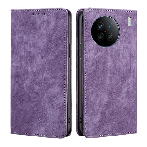Para Vivo X90 Rfid Funda de Teléfono de Cuero Magnético con Cepillo Antirrobo (Púrpura)