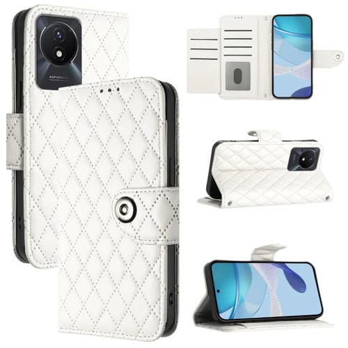 Para Vivo Y02A / Y02 / Y11 2023 / Y02T Funda para Teléfono de Cuero con Tapa con Textura Rómbica y Cordón (Blanco)