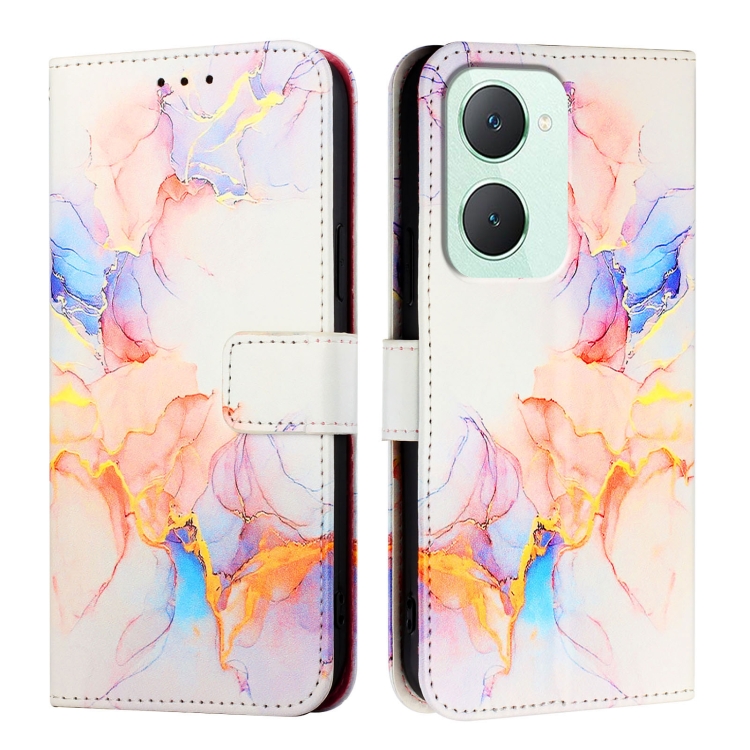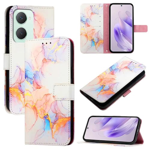 Para Vivo Y03 4G Global Pt003 Funda de Cuero con Tapa con Patrón de Mármol (Blanco Mármol)