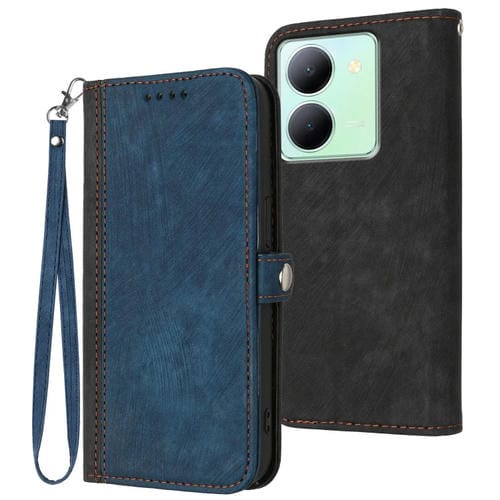 Para Vivo Y27 5G / Y36 4G Funda de Cuero para Teléfono con Hebilla Lateral Global y Correa de Mano con Doble Pliegue (Azul Real)