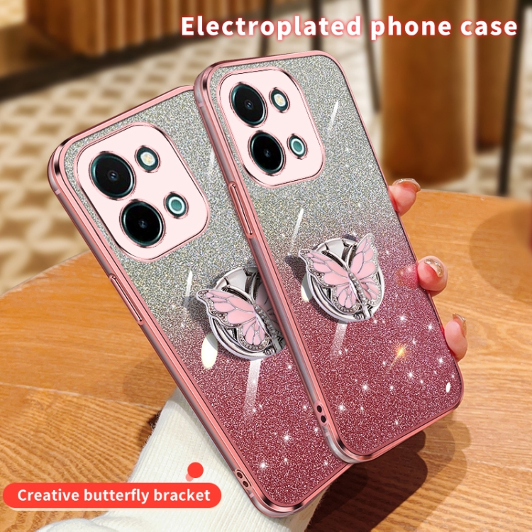 Para Vivo Y28 4G Estuche para Teléfono de TPU con Soporte de Mariposa con Brillo Degradado Plateado (Negro)