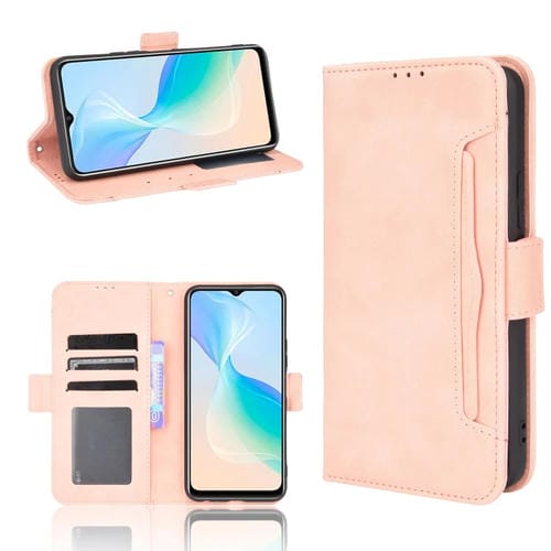 Para Vivo Y33T / Y33S / Y21 / Y21S Skin Feel Becerro Textura Ranuras para Tarjetas Funda de Cuero para Teléfono (Rosa)