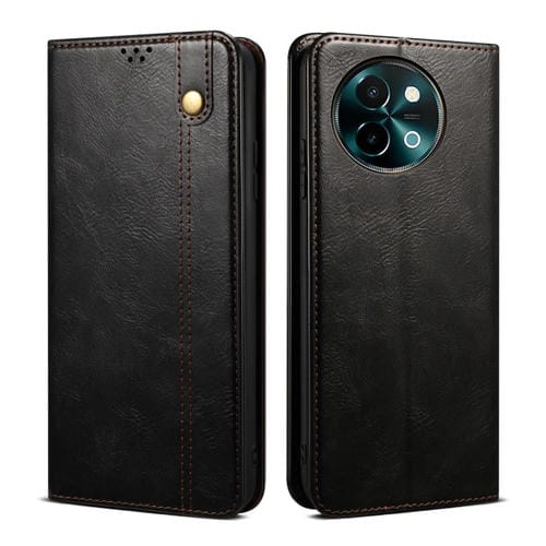 Para Vivo Y38 5G Global Oil Wax Crazy Horse Texture Funda de Cuero para Teléfono (Negro)