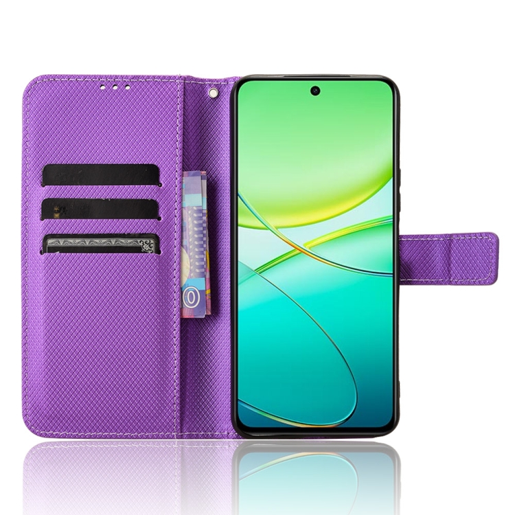 Para Vivo Y38 5G / Y200I 5G Funda de Cuero para Teléfono con Textura de Diamante (Púrpura)