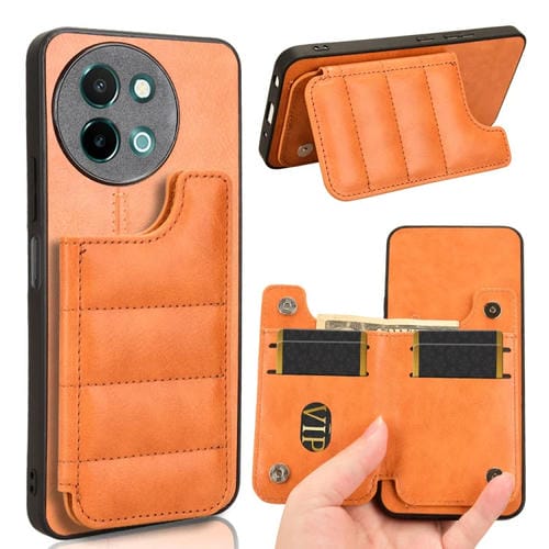Para Vivo Y38 / Y200I Funda para Teléfono con Bolsa para Tarjetas de Costura con Patrón de Vaca (Naranja)