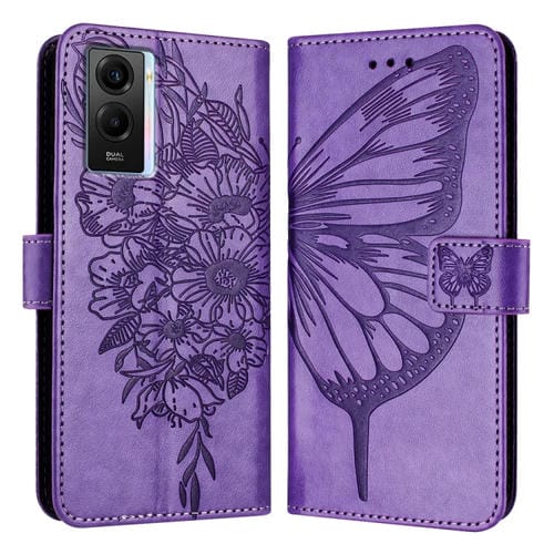 Para Vivo Y55 5G Global / Y55S 2023 5G Funda para Teléfono de Cuero con Mariposa En Relieve (Púrpura Claro)