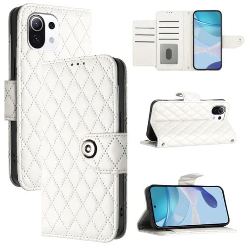 Para Xiaomi 11 Lite 5G Ne Funda para Teléfono de Cuero con Tapa con Textura Romboidal y Cordón (Blanco)