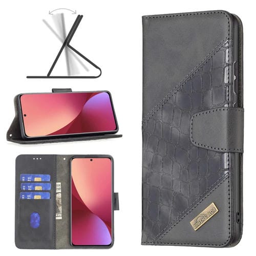 Para Xiaomi 12 Color de Cocodrilo a Juego Cocodile Pu Case de Cuero (Negro)