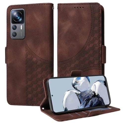 Para Xiaomi 12T / 12T Pro Funda de Teléfono de Cuero Estrellado con Rombos En Relieve (Marrón)
