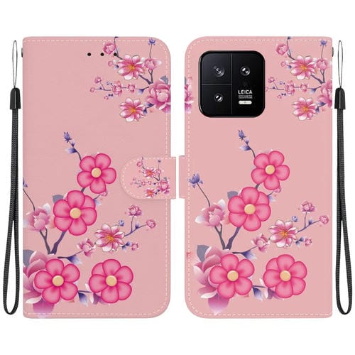 Para Xiaomi 13 5G Funda de Teléfono de Cuero con Dibujo Coloreado con Textura de Cristal (Flores de Cerezo)