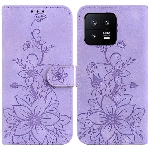 Para Xiaomi 13 5G Lily Funda de Cuero En Relieve para Teléfono (Púrpura)