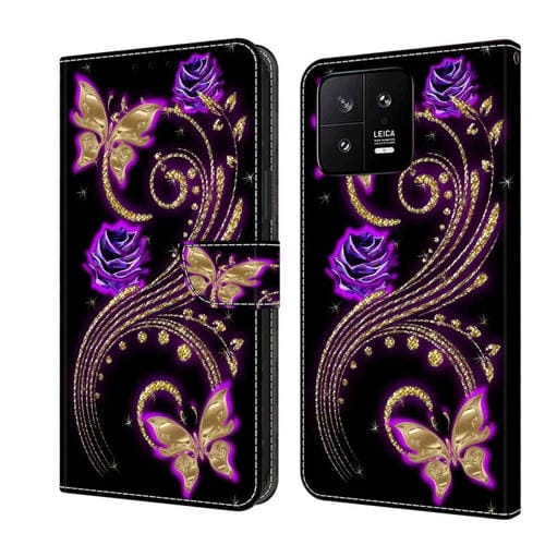 Para Xiaomi 13 Crystal 3D Funda Protectora de Cuero para Teléfono a Prueba de Golpes (Mariposa de Flor Púrpura)