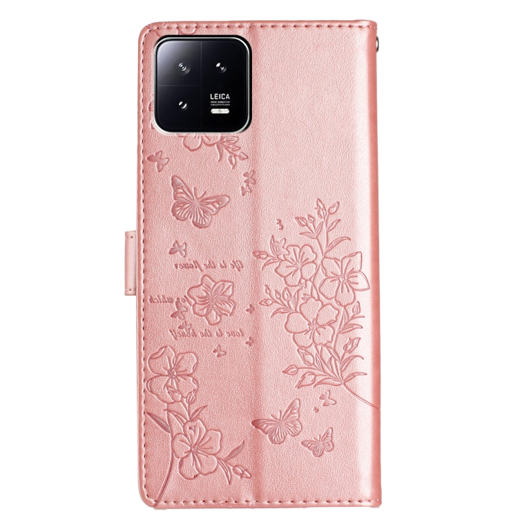 Para Xiaomi 13 Funda de Cuero para Teléfono con Mariposas y Flores (Oro Rosa)