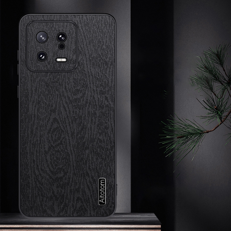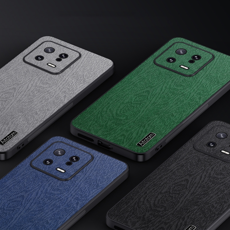 Para Xiaomi 13 Funda de Teléfono a Prueba de Golpes de Cuero con Corteza de Árbol (Gris)