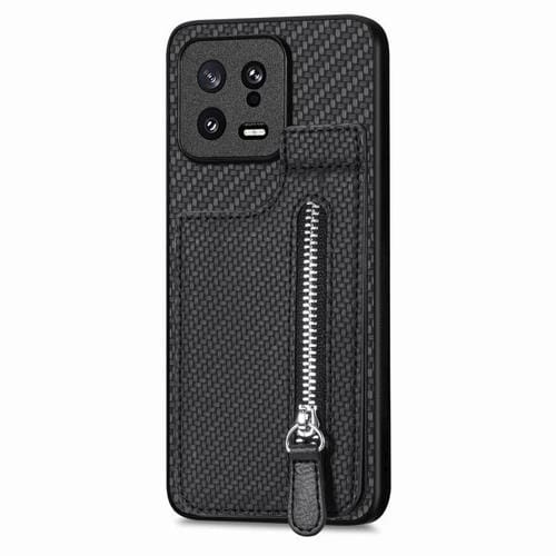Para Xiaomi 13 Funda de Teléfono con Cremallera Vertical de Fibra de Carbono (Negro)