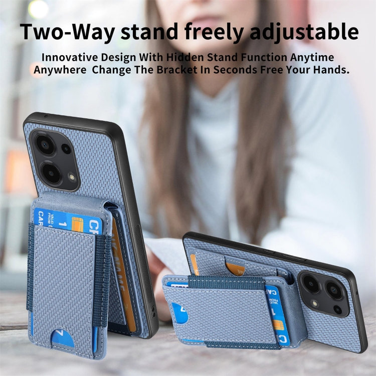 Para Xiaomi 13 Funda para Teléfono con Soporte y Billetera con Tapa Vertical de Fibra de Carbono (Azul)