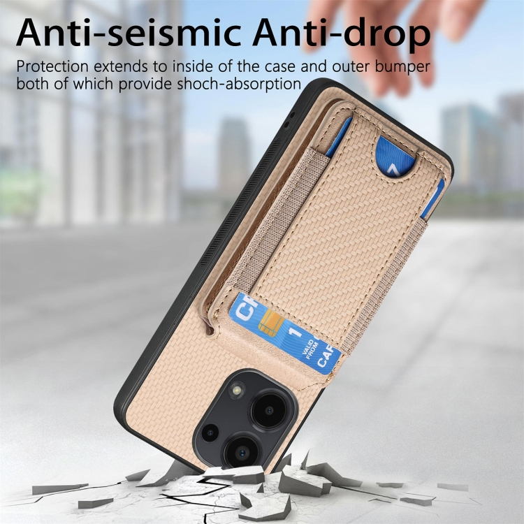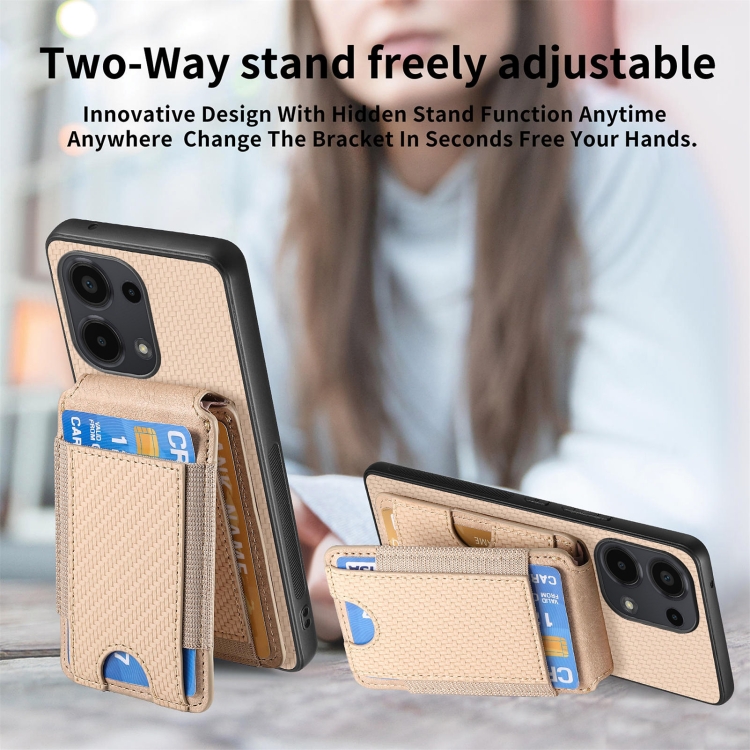 Para Xiaomi 13 Funda para Teléfono con Soporte y Billetera con Tapa Vertical de Fibra de Carbono (Caqui)