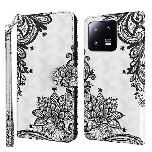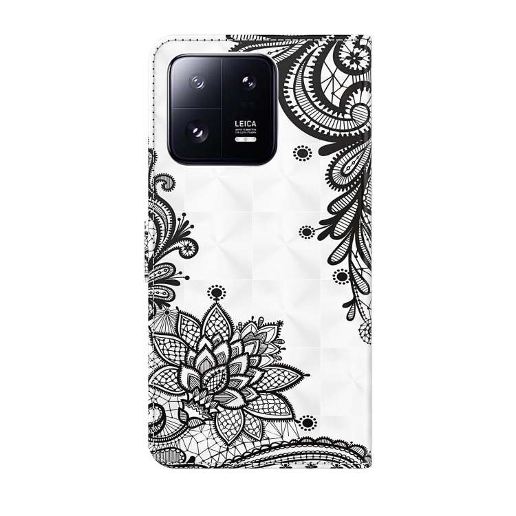 Para Xiaomi 13 Pro 3D Patrón de Pintura Flip Funda de Cuero para Teléfono (Flor Negra Diagonal)