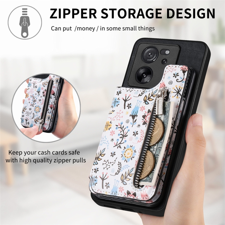 Para Xiaomi 13 Pro 5G Estuche para Teléfono con Billetera con Cremallera Pintada Retro (Negro)