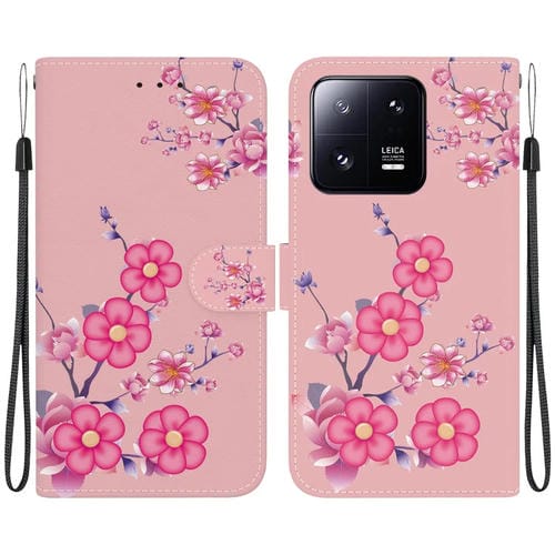 Para Xiaomi 13 Pro 5G Funda de Teléfono de Cuero con Dibujo Coloreado con Textura de Cristal (Flores de Cerezo)