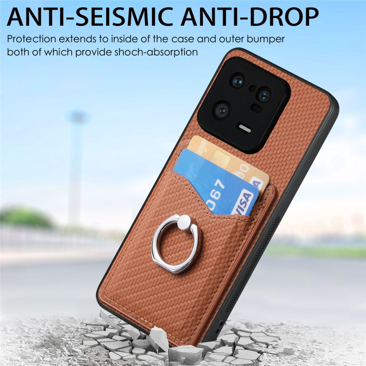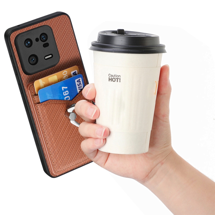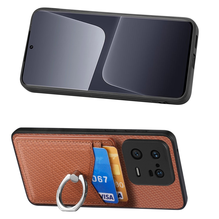 Para Xiaomi 13 Pro Carbon Fiber Card Wallet Ring Holder Phone Case (Marrón)