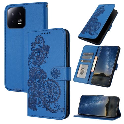 Para Xiaomi 13 Pro Datura Flower Funda de Teléfono de Cuero con Tapa En Relieve (Azul)
