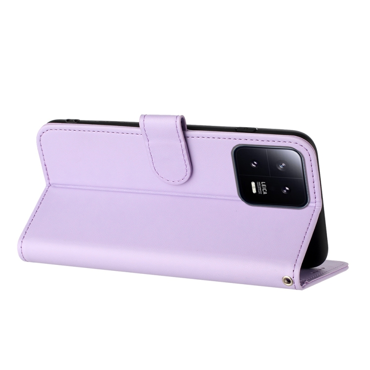 Para Xiaomi 13 Pro Datura Flower Funda de Teléfono de Cuero con Tapa En Relieve (Púrpura)