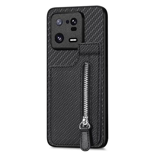 Para Xiaomi 13 Pro Estuche para Teléfono con Cremallera Vertical de Fibra de Carbono (Negro)