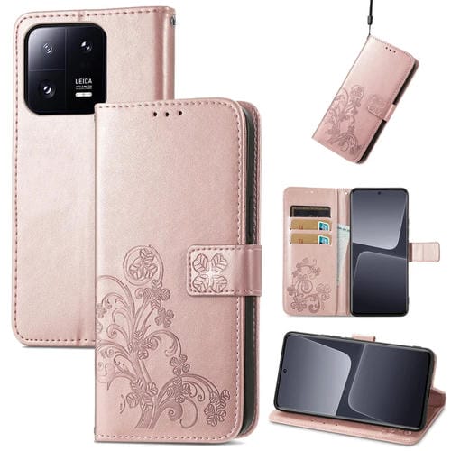 Para Xiaomi 13 Pro Estuche para Teléfono de Cuero con Hebilla En Relieve con Cierre de Cuatro Hojas (Oro Rosa)