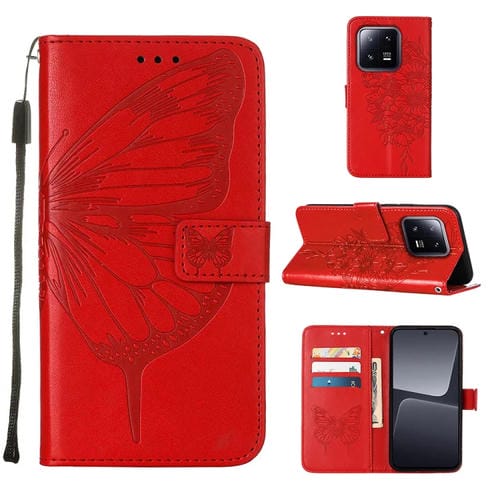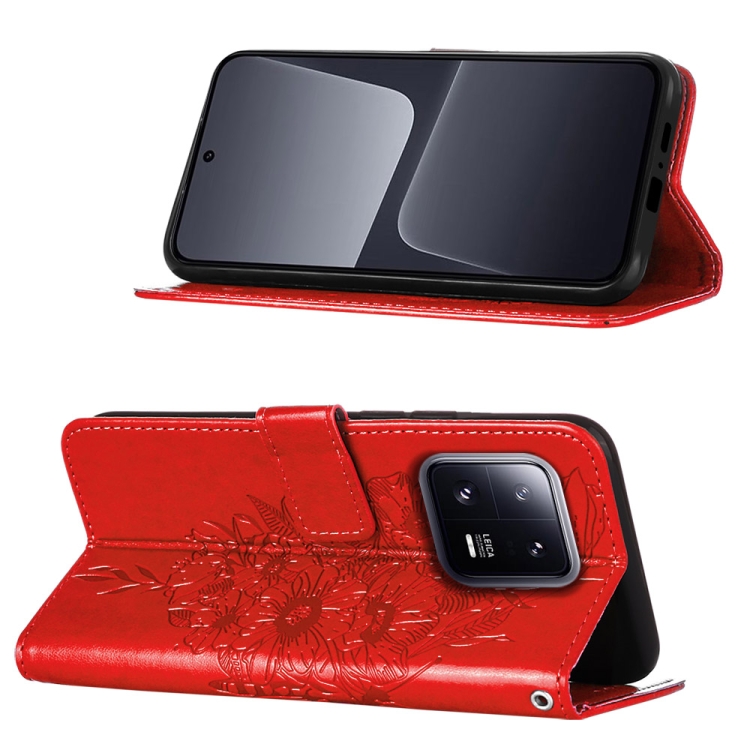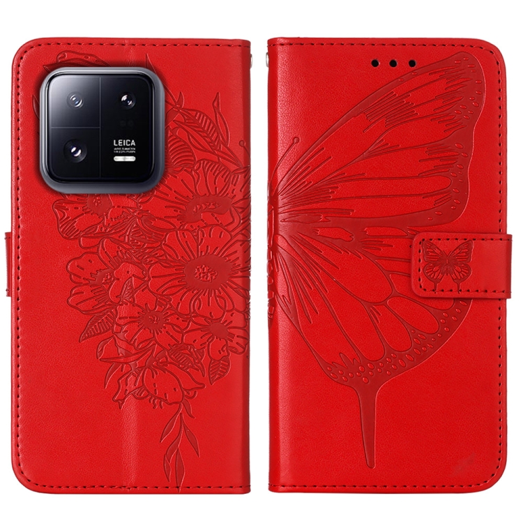Para Xiaomi 13 Pro Estuche para Teléfono de Cuero con Mariposa En Relieve (Rojo)